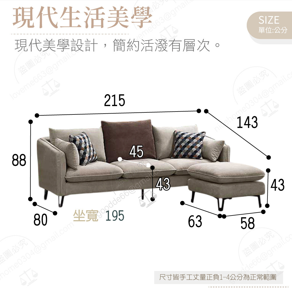 坐寬195公分 量至背枕處坐深45 坐高43公分