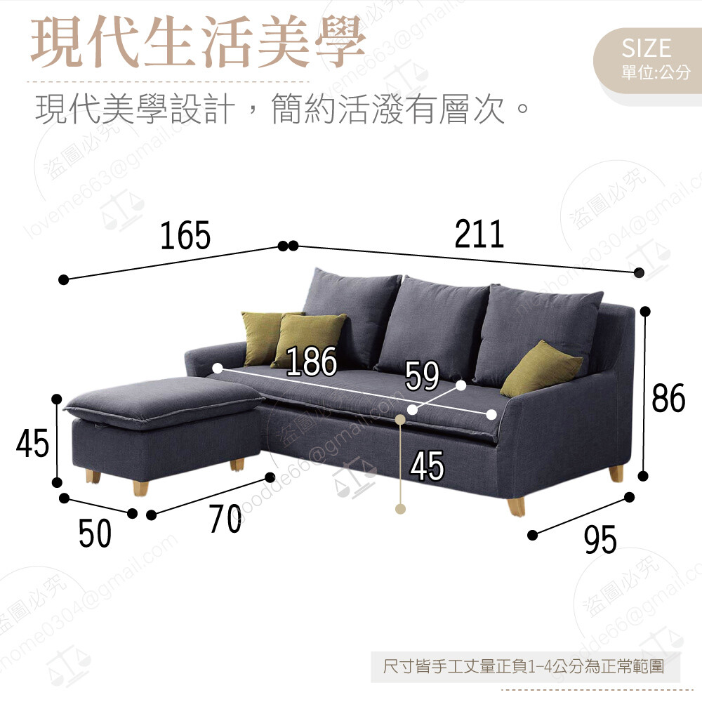 坐寬186公分 量至背枕處坐深59公分 坐高45公分