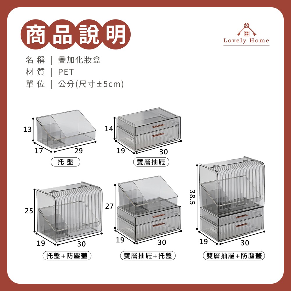 名稱:疊加化妝盒【004托盤+雙層抽屜】