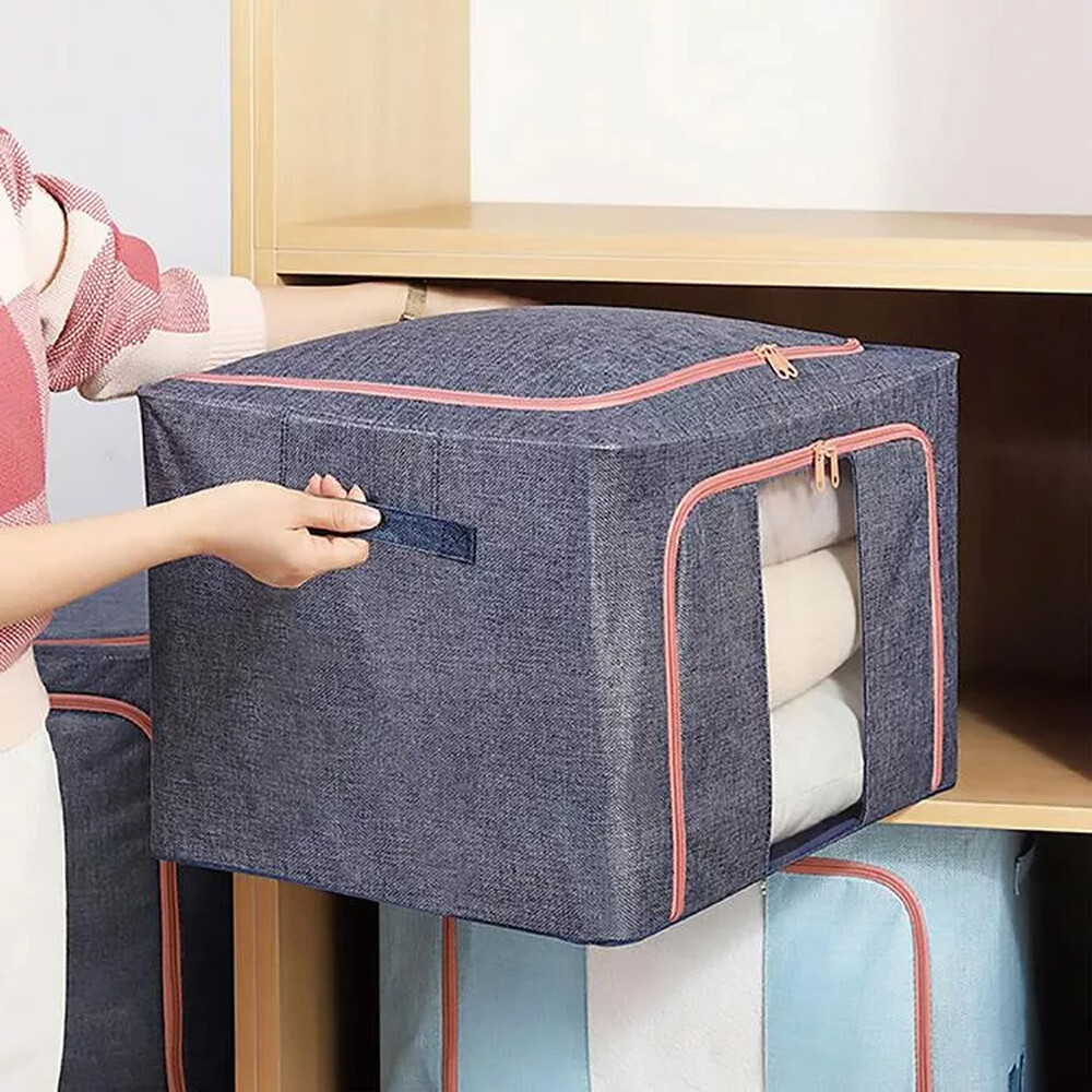 日式 牛津布 四周鋼架衣服收納箱