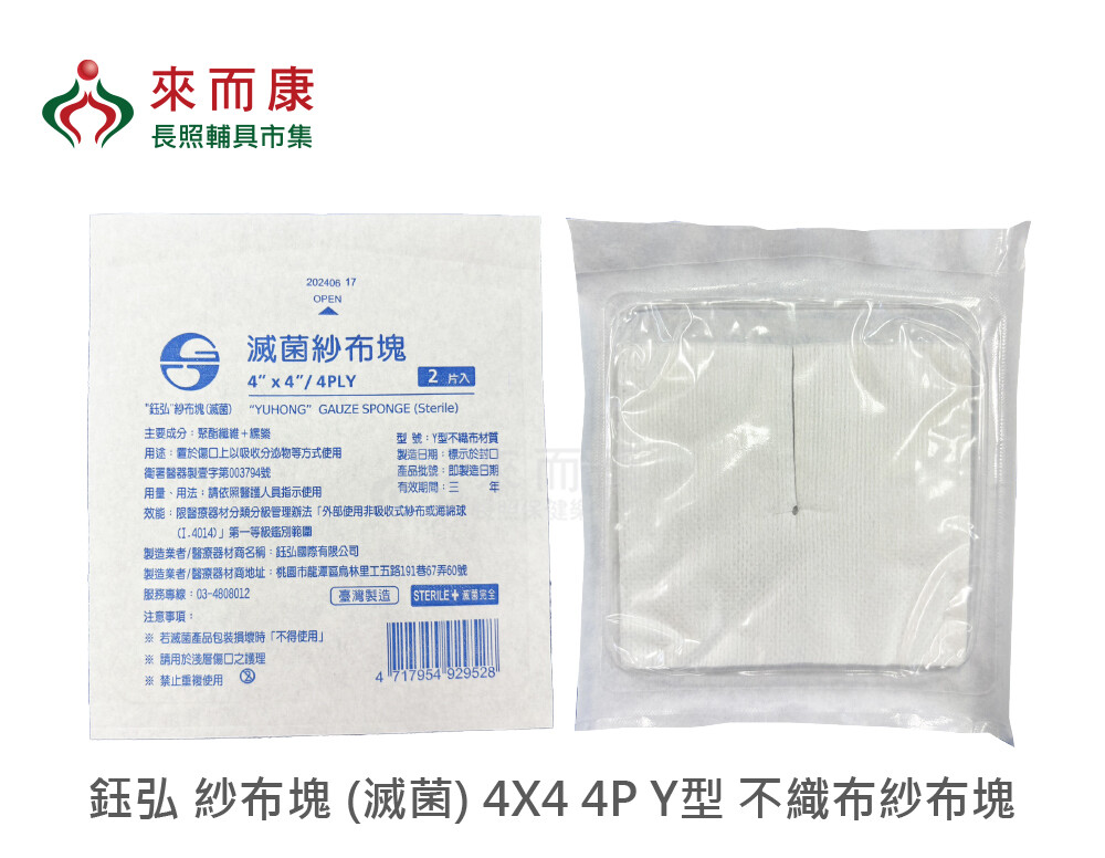 來而康 鈺弘 紗布塊 (滅菌) 4X4 4P Y型 不織布紗布塊 2入/包 1200包/箱 滅菌
