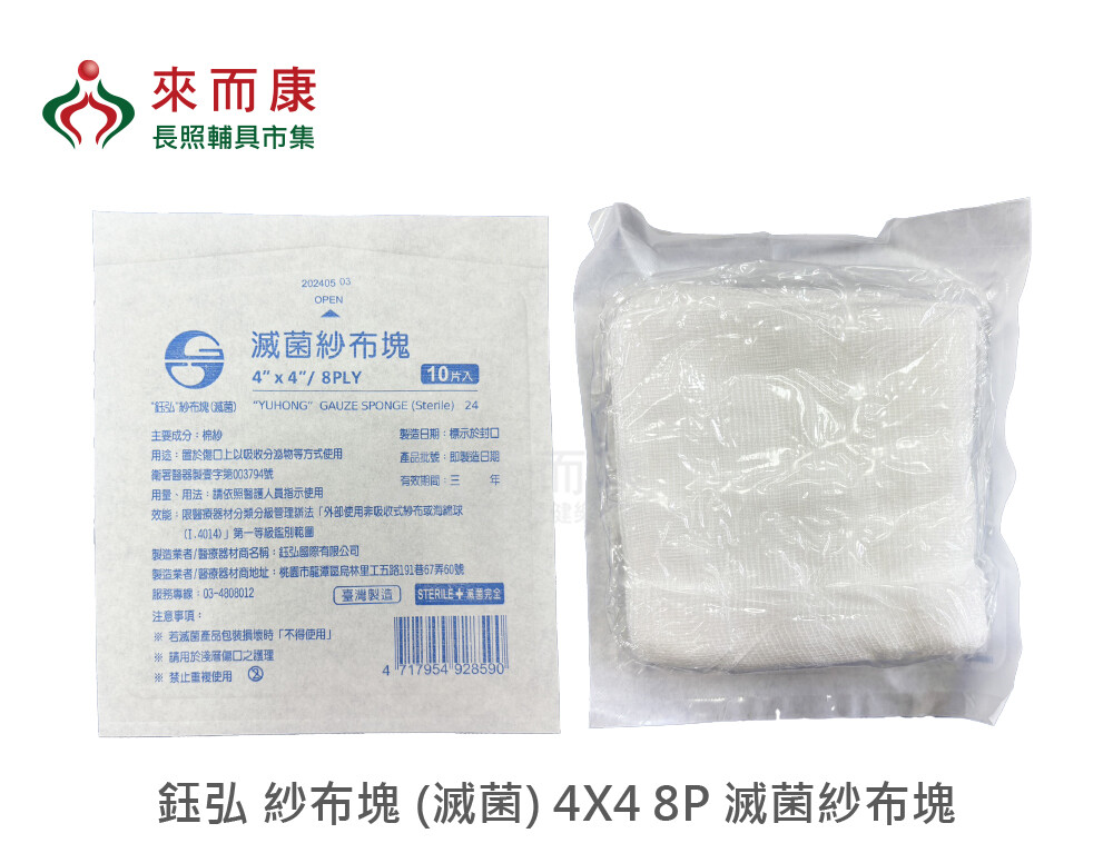 來而康 鈺弘 紗布塊 (滅菌) 4X4 8P 滅菌紗布塊 10入/包 450包/箱 滅菌 紗布