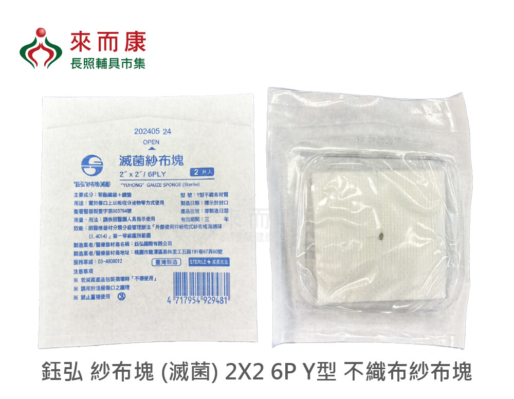 來而康 鈺弘 紗布塊 (滅菌) 2X2 6P Y型 不織布紗布塊 2入/包 2400包/箱 滅菌