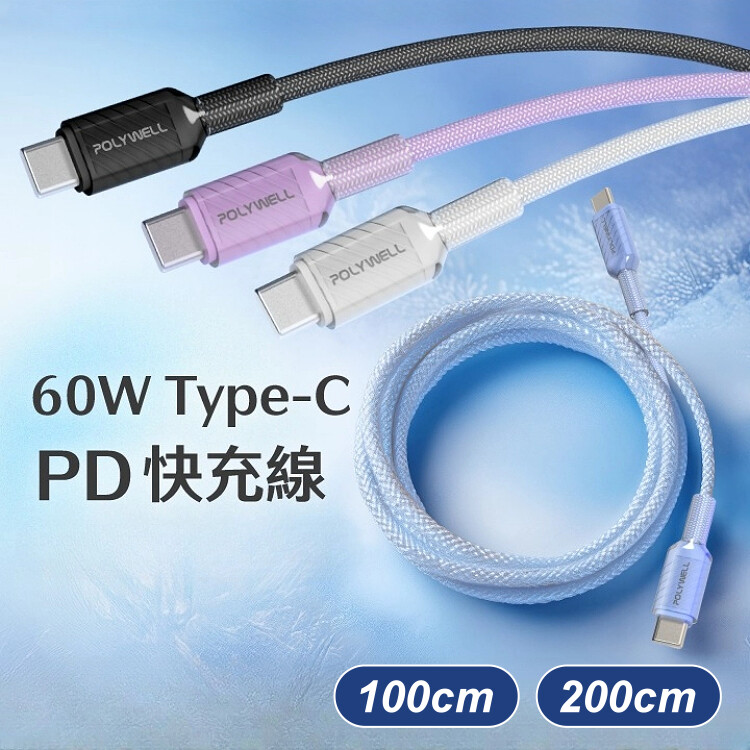.品名:Type-C To Type-C 晶透PD編織快充線