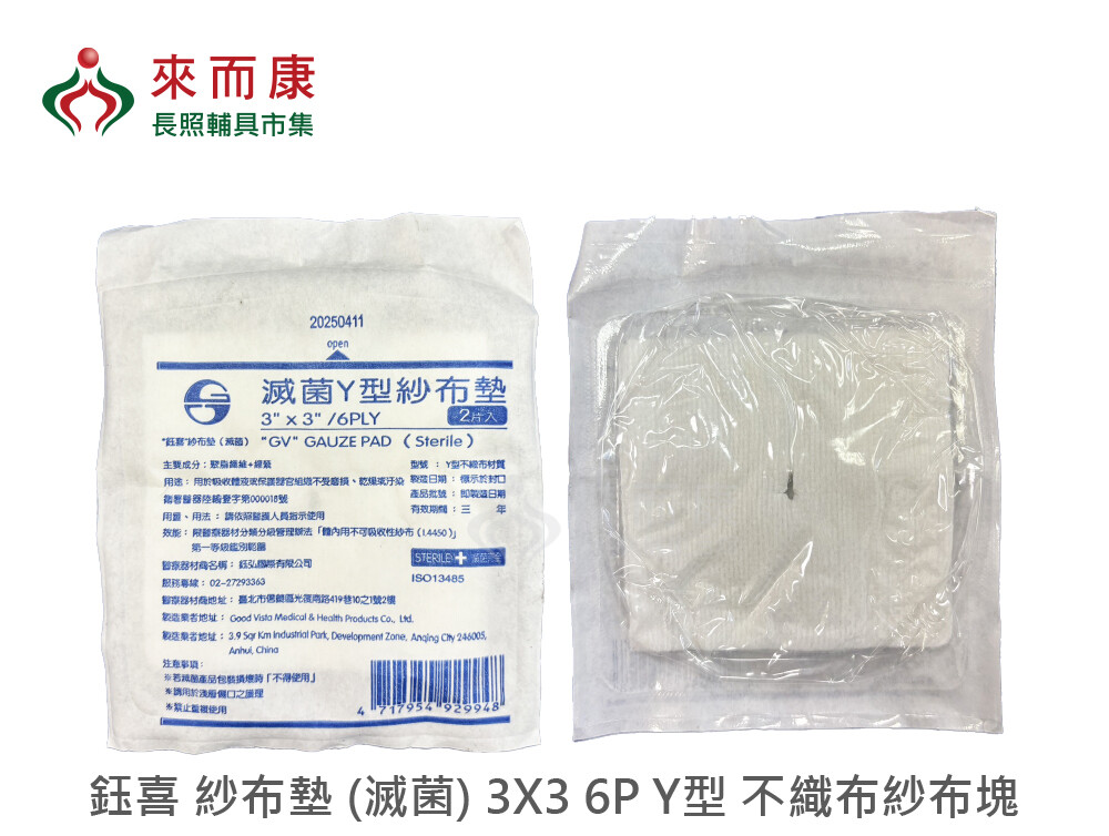 來而康 鈺喜 紗布墊 (滅菌) 3X3 6P Y型 不織布紗布塊 2入/包 1400包/箱 滅菌