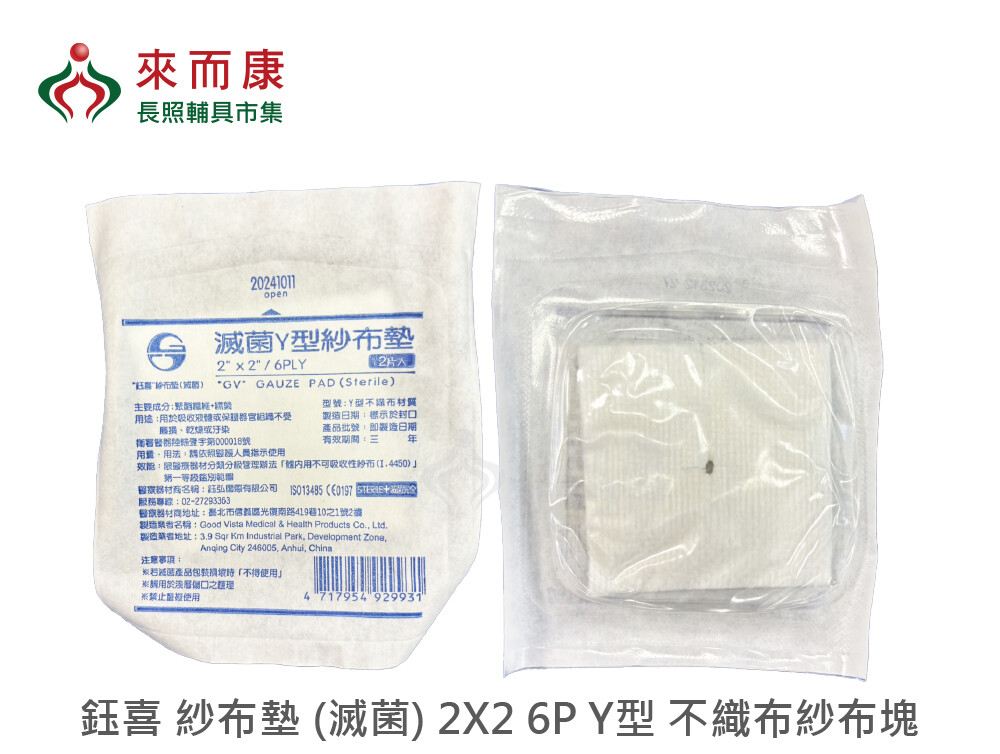 來而康 鈺喜 紗布墊 (滅菌) 2X2 6P Y型 不織布紗布塊 2入/包 2400包/箱 滅菌