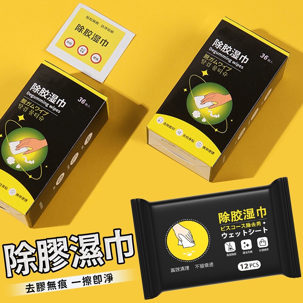 ☆【除膠濕巾】12入裝 黏膠去除劑 殘膠清潔劑 除膠劑 除黏膠濕紙巾 貼紙清除劑☆