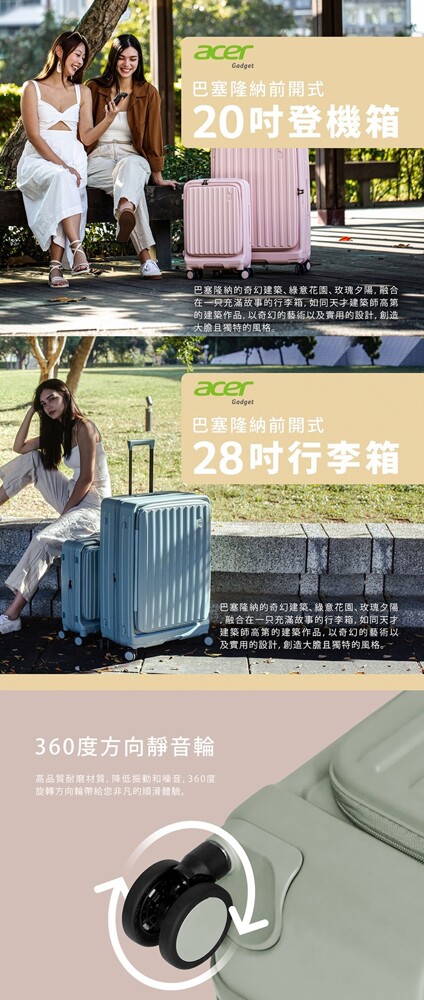 【Acer Fashion】二件組 巴塞隆納前開式行李箱20吋+28吋 夢幻粉-贈好禮