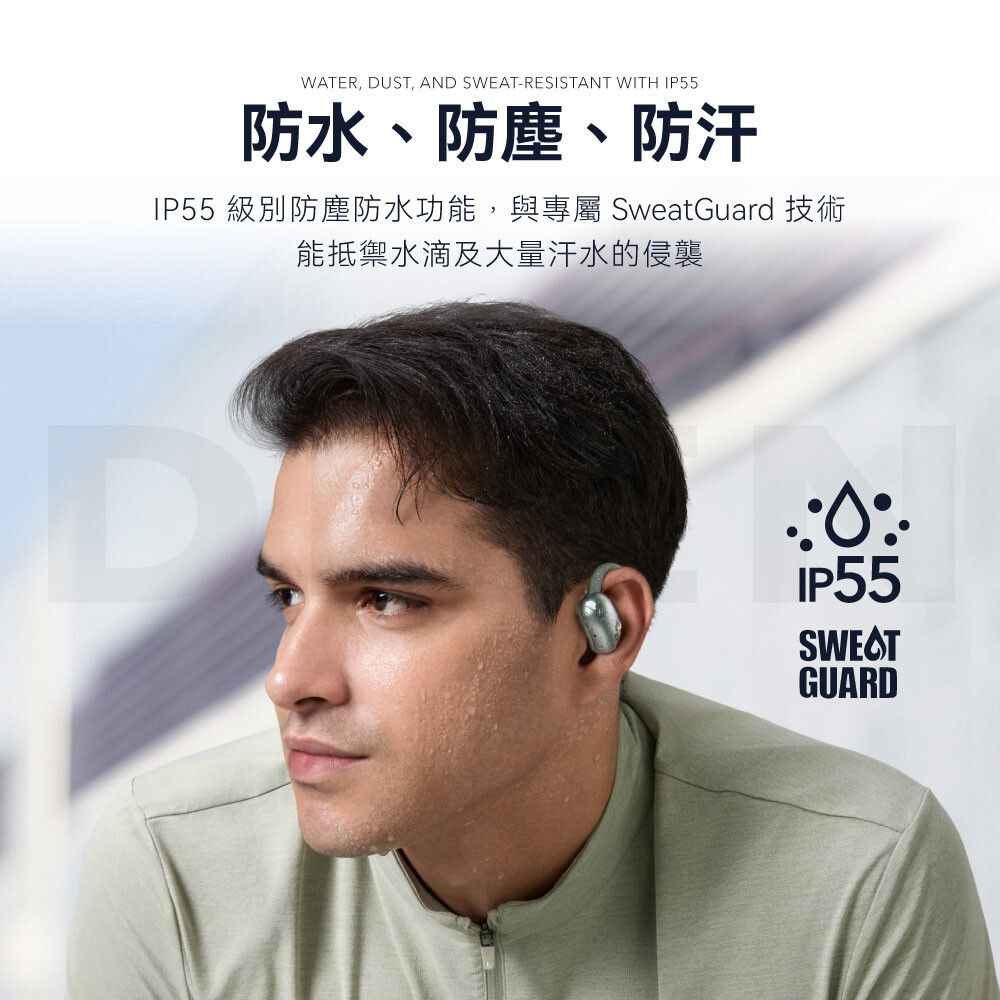 獨創 Sweat Guard 專利防汗塗層 + IP55 防護認證,出外運動不受限。