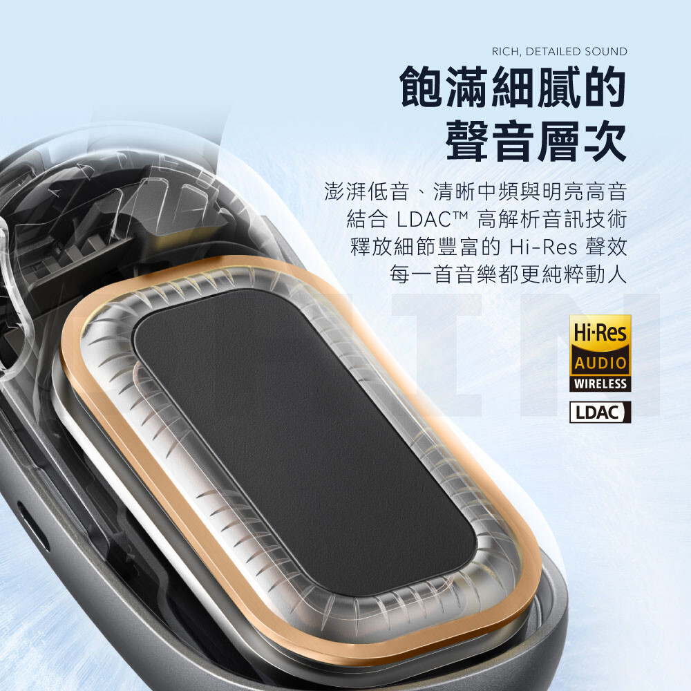 定向聲學技術,搭配旋轉耳掛、聲學黑洞設計,將聲音精準傳遞至耳道。