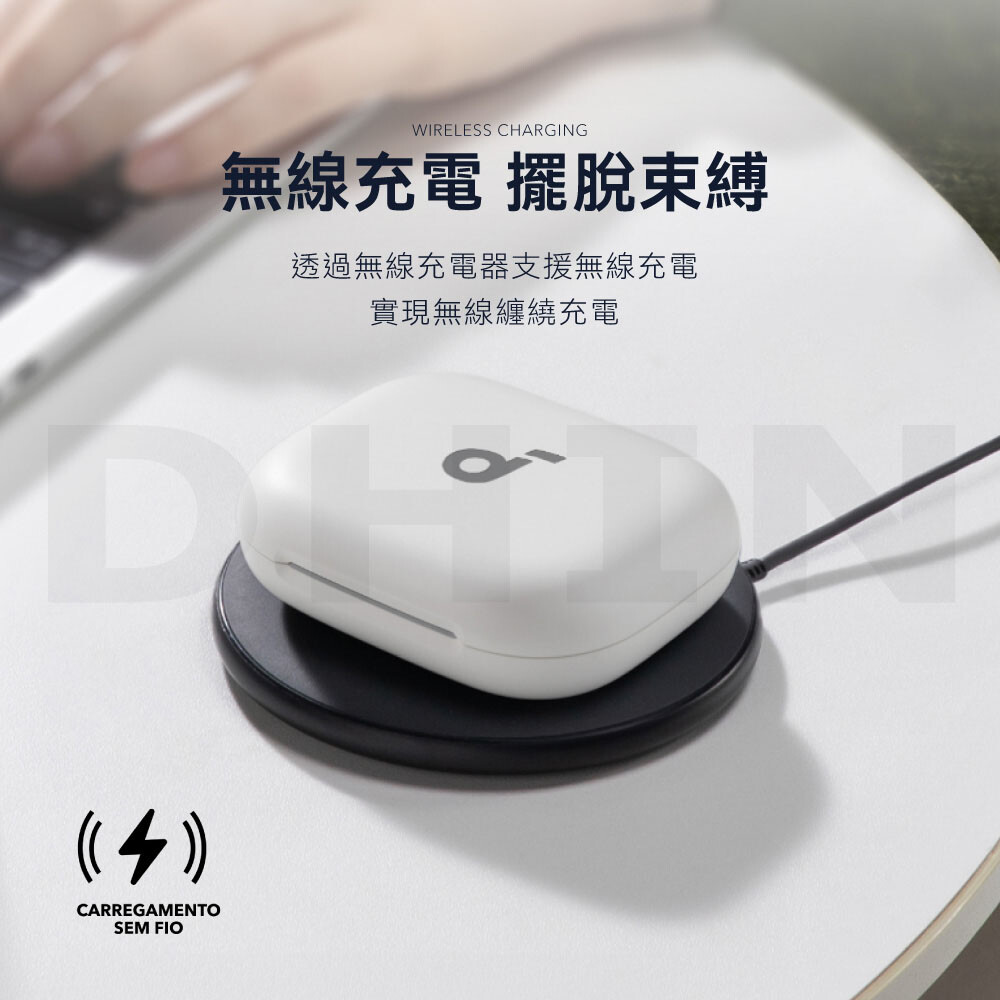 將耳機充電盒放置於無線充電板即可充電,擺脫線材困擾。