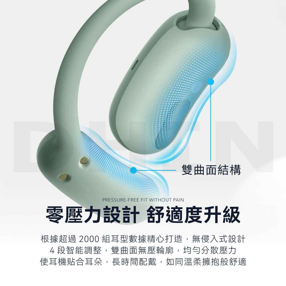 獨家雙曲面設計,均勻分散壓力,貼合耳朵時零感舒適。