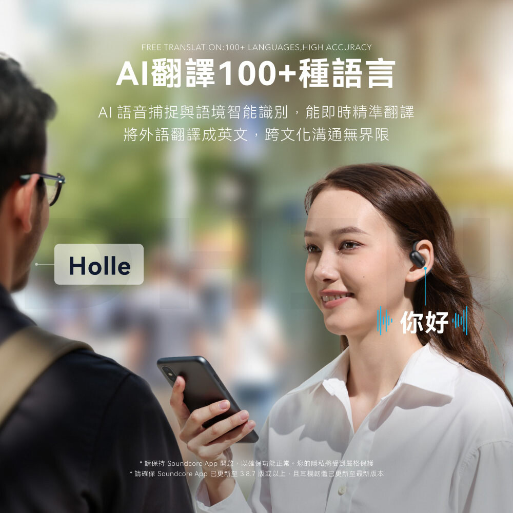 內建 100+ 種語言翻譯,提供面對面與即時翻譯功能,溝通無隔閡。