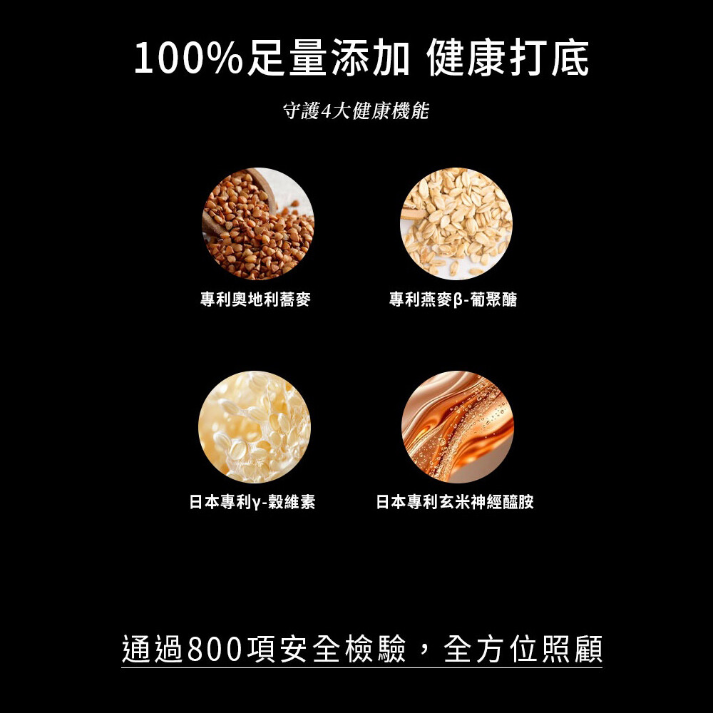 【商品成分】燕麥粉(含β-葡聚醣)、γ-穀維素、蕎麥粉(含維生素D3)、麥芽糊精、玄米萃取物(含神經醯胺)(玉米糊精、米萃取物)、二氧化矽