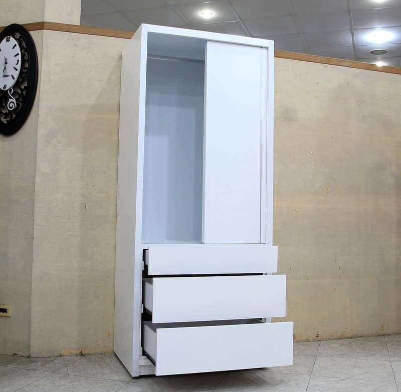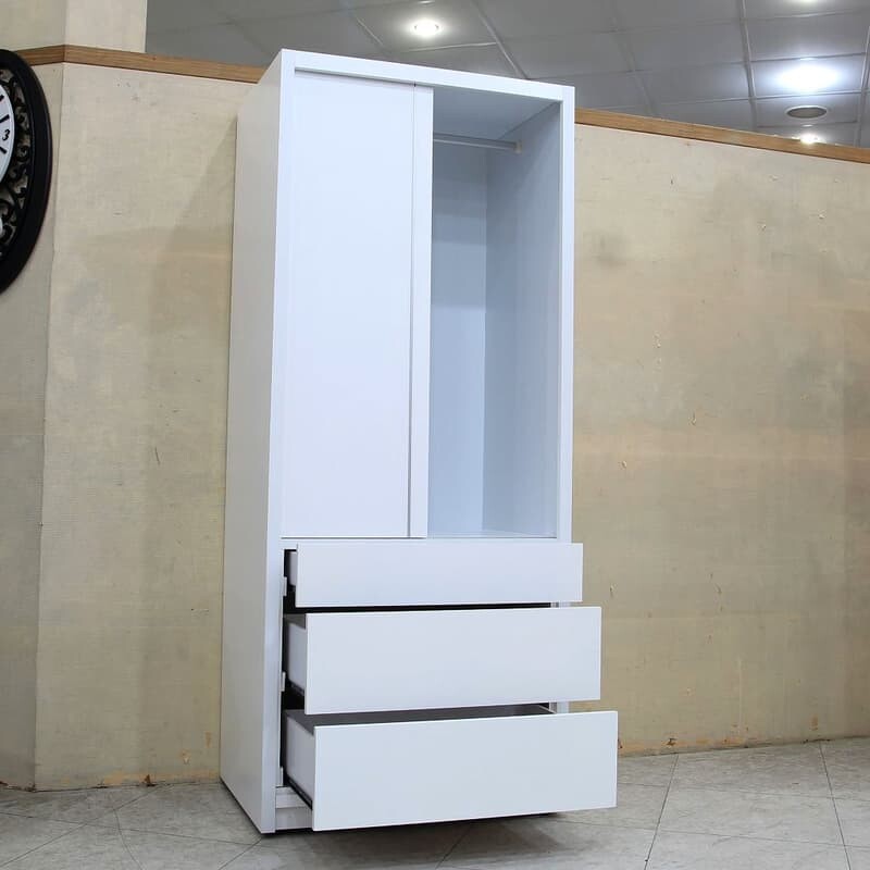 2.7尺白色滑門三抽衣櫃