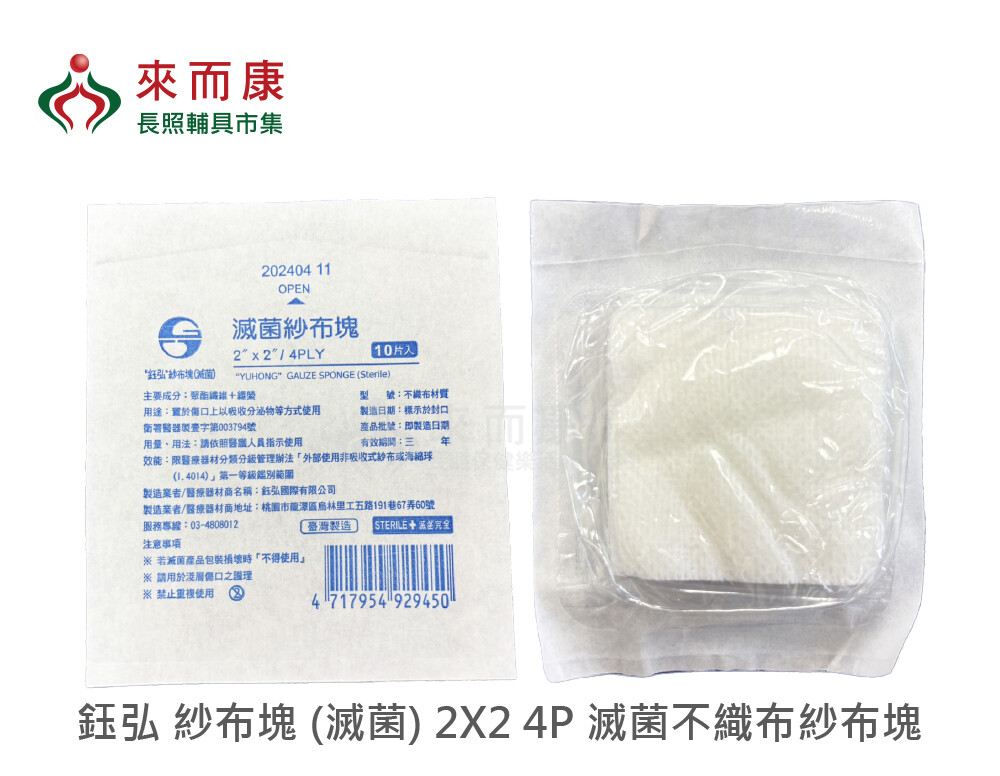 來而康 鈺弘 紗布塊 (滅菌) 2X2 4P 滅菌不織布紗布塊 10入/包 1000包/箱 滅菌