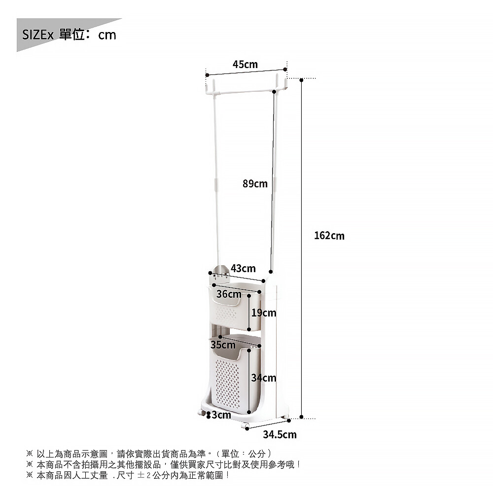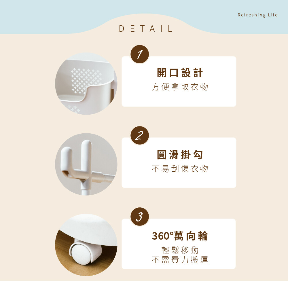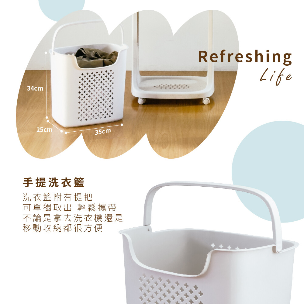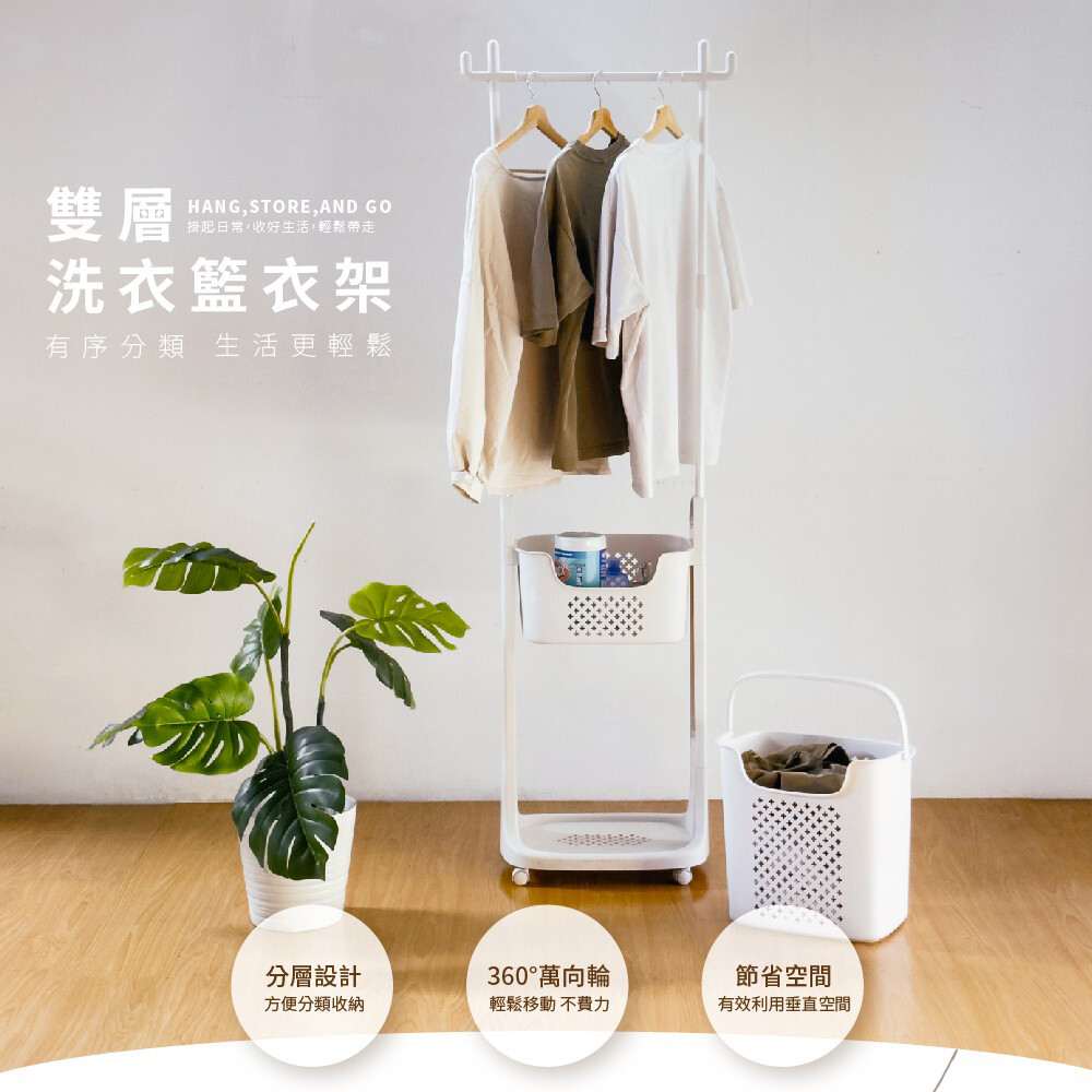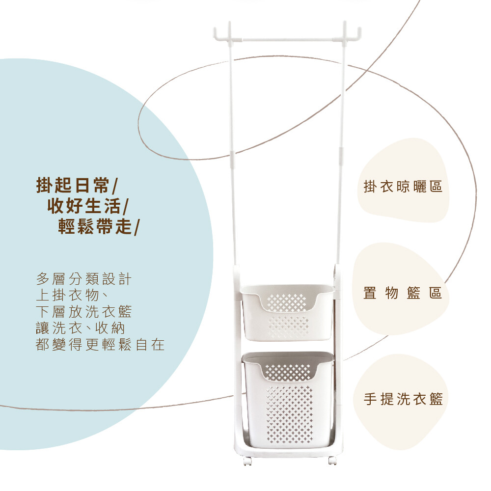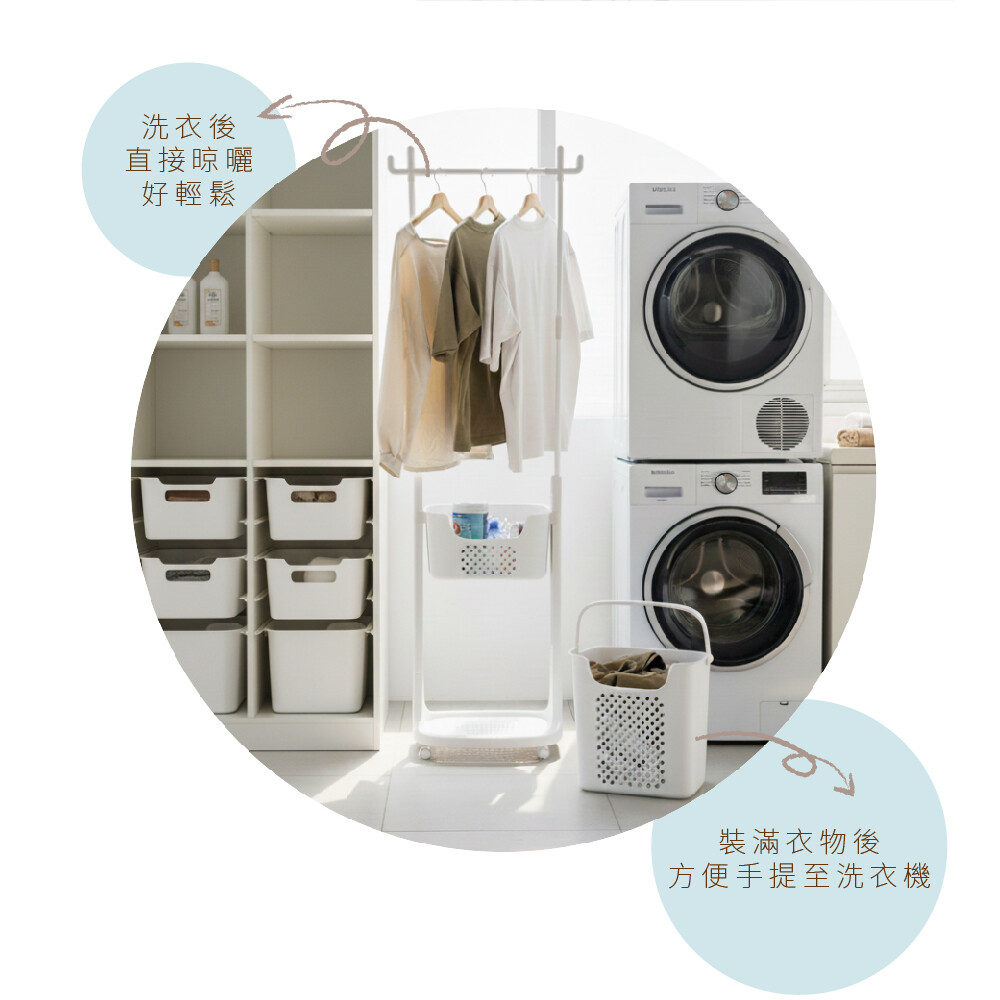 ✓ 洗衣籃結合掛衣桿設計,方便分類收納
