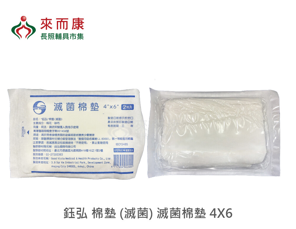 來而康 鈺弘 棉墊 (滅菌) 滅菌棉墊 4X6 2片/包 200包/箱 滅菌 吸收纖維 棉花 紗布