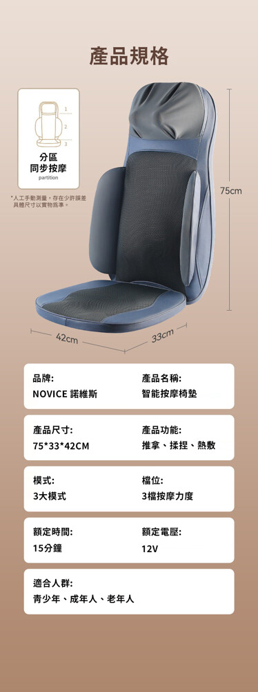 【NOVOICE 諾維斯】旗艦款全自動背部五點按摩熱敷椅墊SB-A11