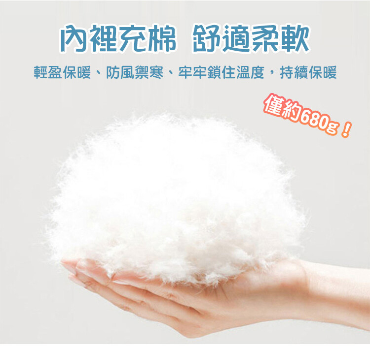 2.仿羽絨鋪棉保暖,僅680g極度輕巧!