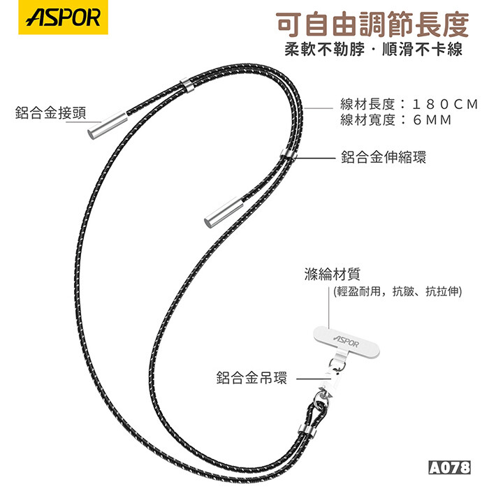 ◎ 全新突破 掛繩+充電線結合、附墊片,180cm