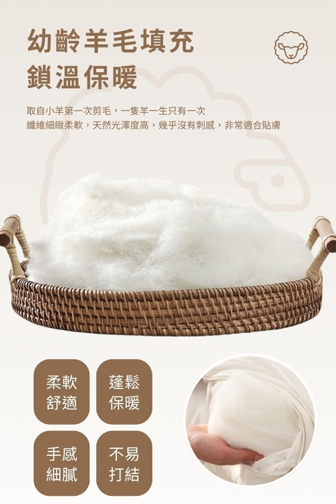快速的烘乾轉速易使羊毛斷裂。過熱的溫度易使羊毛縮水。好的保養方式,讓您的羊毛被耐用10年以上喔。