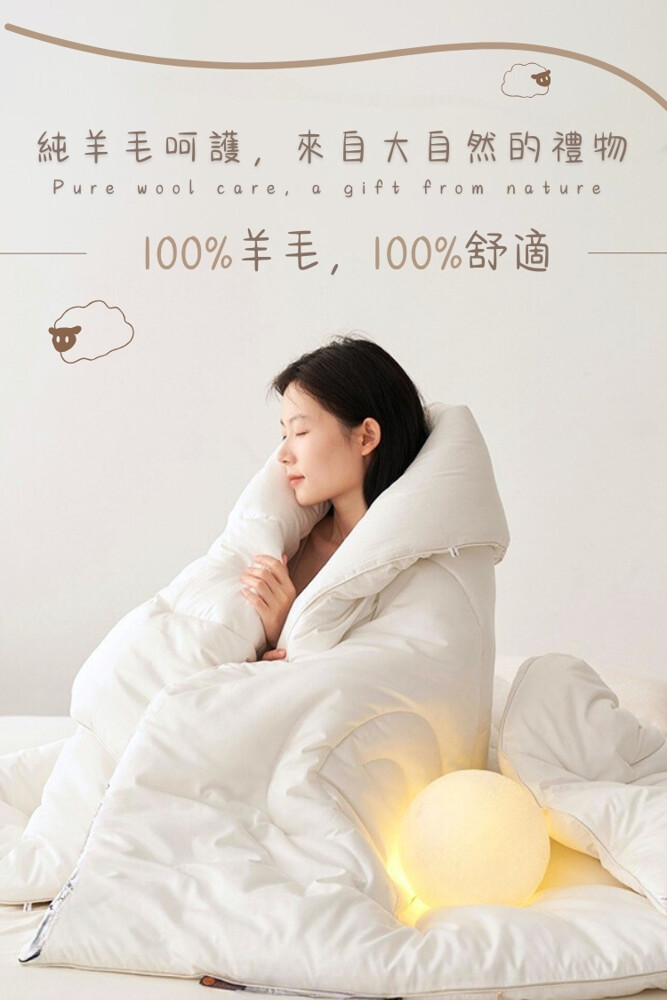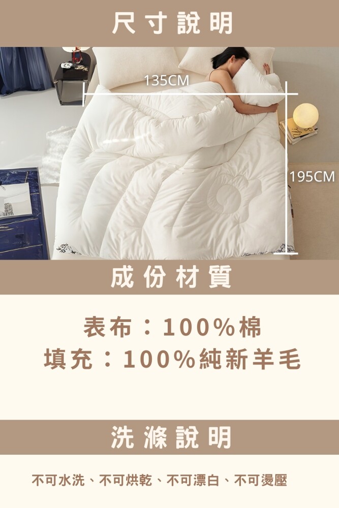 ◆保養方式:不可水洗/不可乾洗/定期置於日光下曝曬。如需洗滌請洽專業羊毛被洗衣店