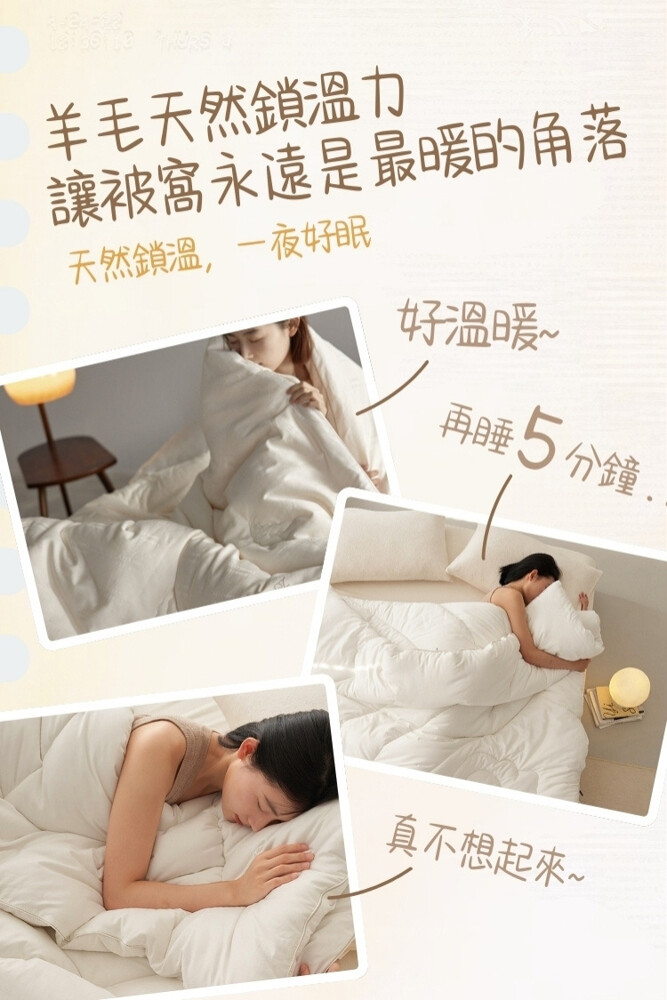 本商品為純天然羊毛,請勿用烘乾機烘被,可採用除濕機烘。以保持羊毛完整性喔。