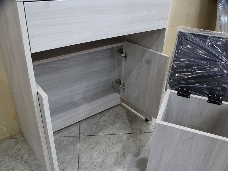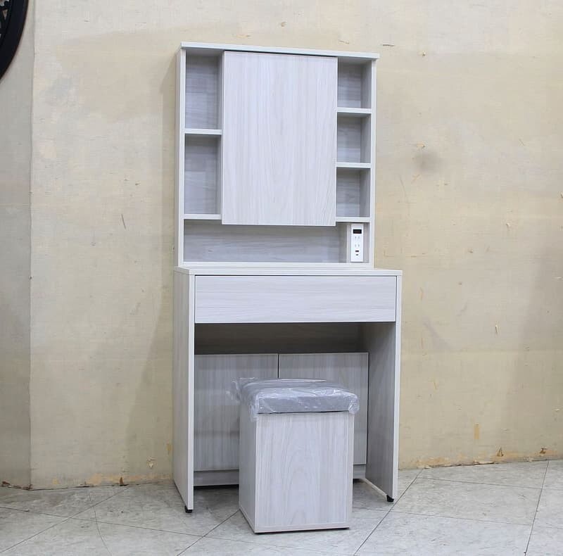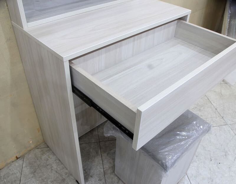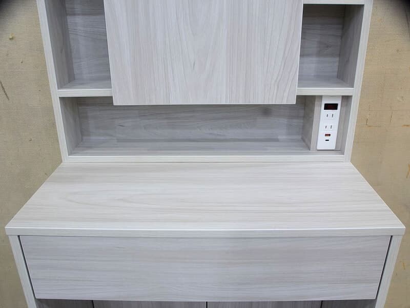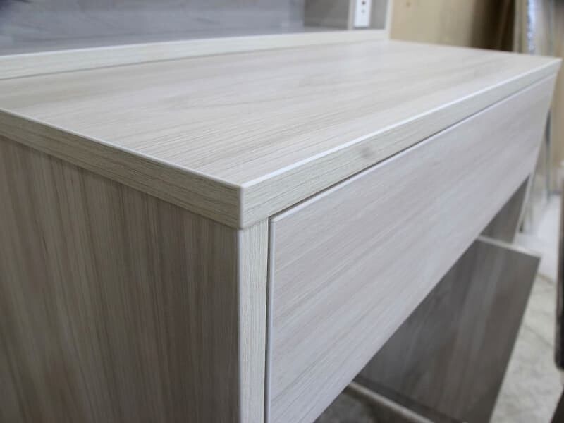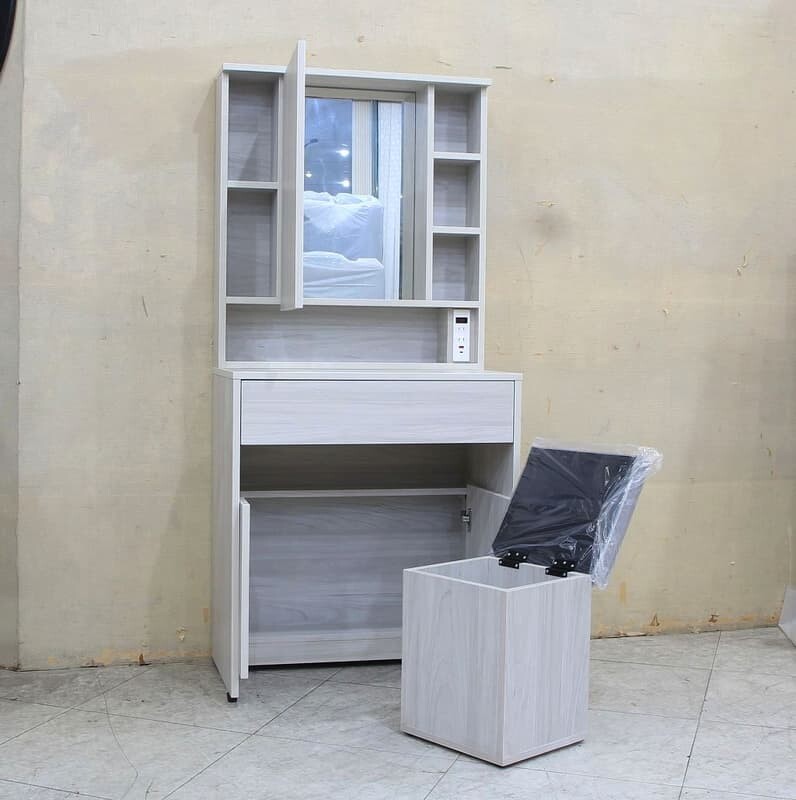 材質 | 板材 : 桶身,面板,門板及抽牆皆為防潮木心板材,堅固耐用, 附貓抓皮可收納化妝椅 塗裝 : 白梣色耐磨木皮,ABS封邊質感細緻 五金 : 抽屜採雙截式鋼珠滑軌 ,無把手設計簡潔優雅 , 門片緩衝後鈕 , 內建台灣製多功能插座 |