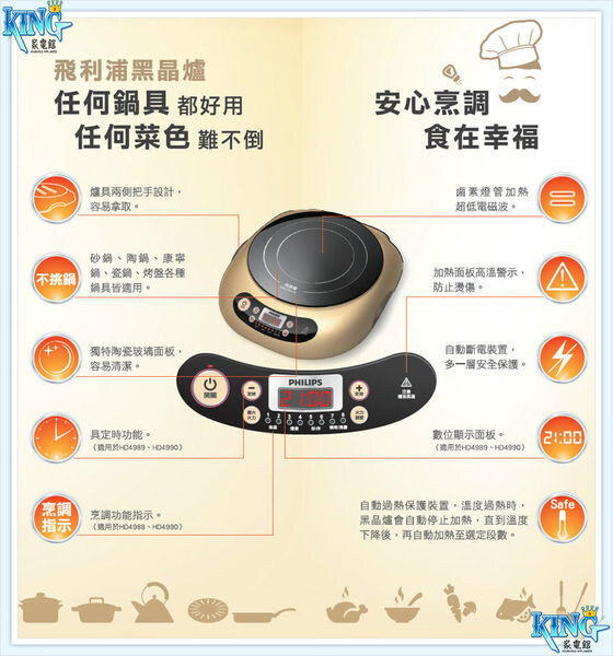 【PHILIPS 飛利浦】贈陶瓷不沾平底鍋 旗鑑款不挑鍋萬用黑晶爐 HD4990